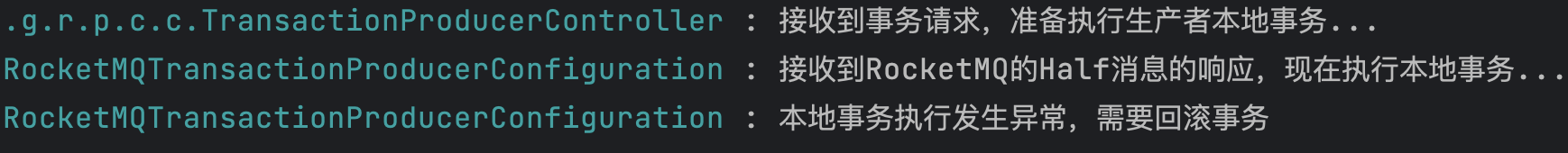 log.info("接收到 RocketMQ 的 Half 消息的响应,现在执行本地事务。..");