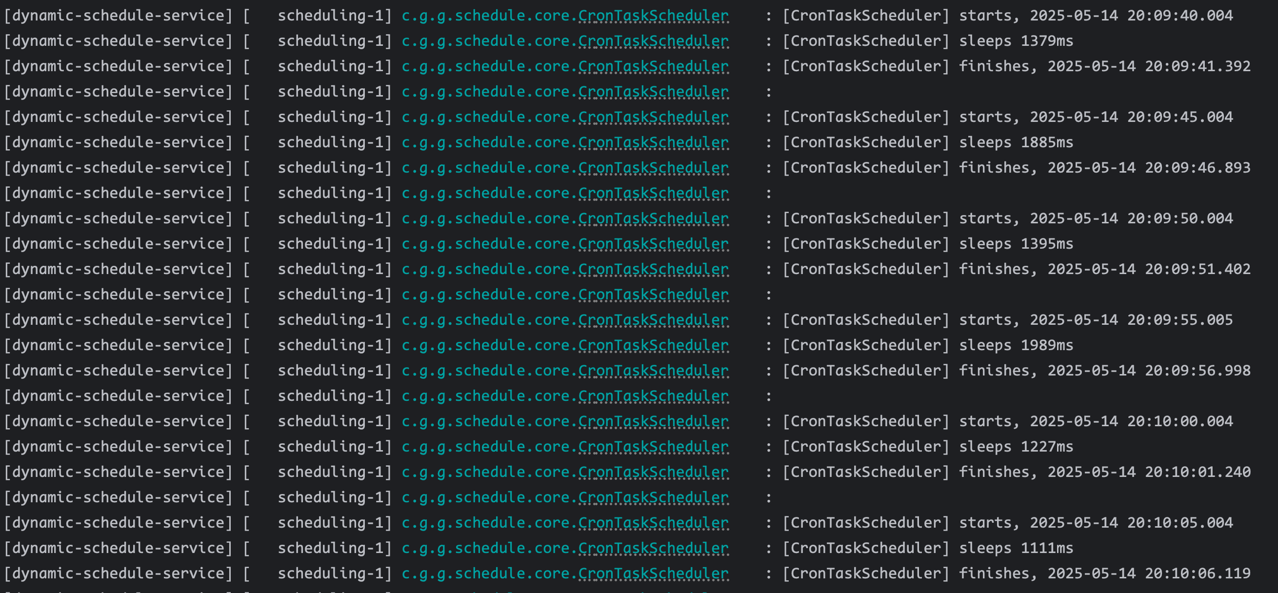 所以我们可以推断,这些定时任务只会在项目启动之后统一的调度,并不会在运行期间自动更新调度规则