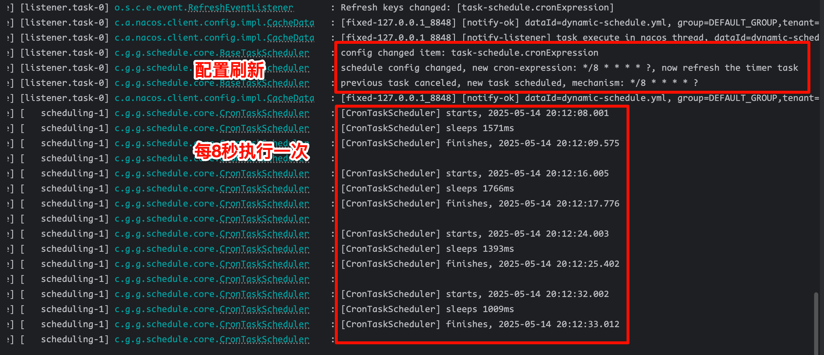 */8 * * * * ?,并且不重启服务: