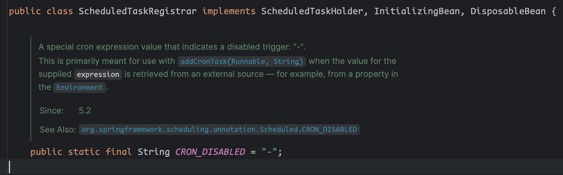 if (!Scheduled.CRON_DISABLED.equals(cron)) {
