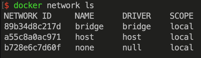 - bridge:默认网卡,类似于 VMware 的 NAT 模式,如果需要访问容器内部的端口需要进行端口映射。