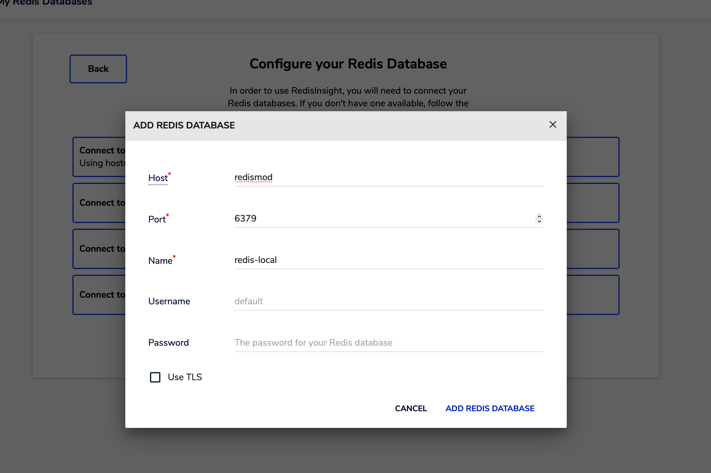 然后在 Host 处填写 [redismod] 就可以自动解析为 redismod 容器的 IP 地址。