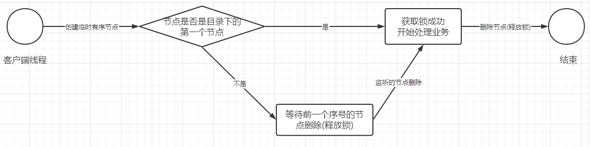 - 当创建的临时节点就是这个目录下的第一个节点,说明获取锁成功,可以开始业务