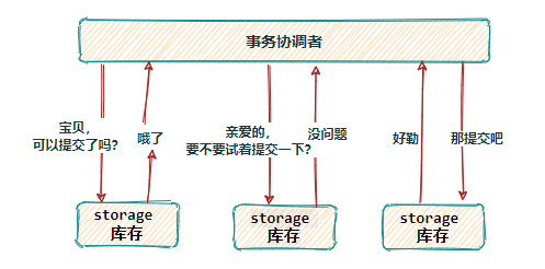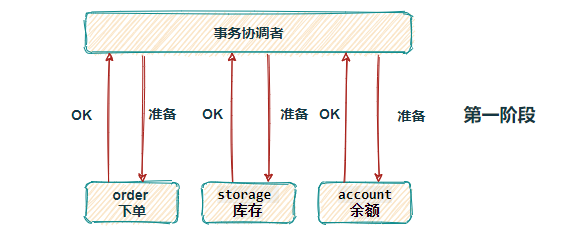 准备阶段:事务管理者向所有资源管理者发送事务内容,资源管理者执行事务但不提交,并询问各资源管理者是否可以提交事务。