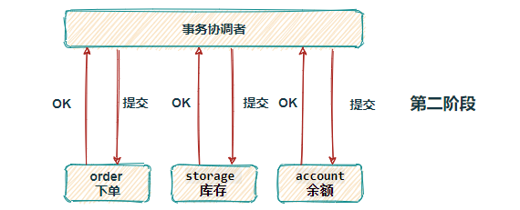 提交阶段:事务管理者根据准备阶段中得到的反馈消息,决定本次事务是